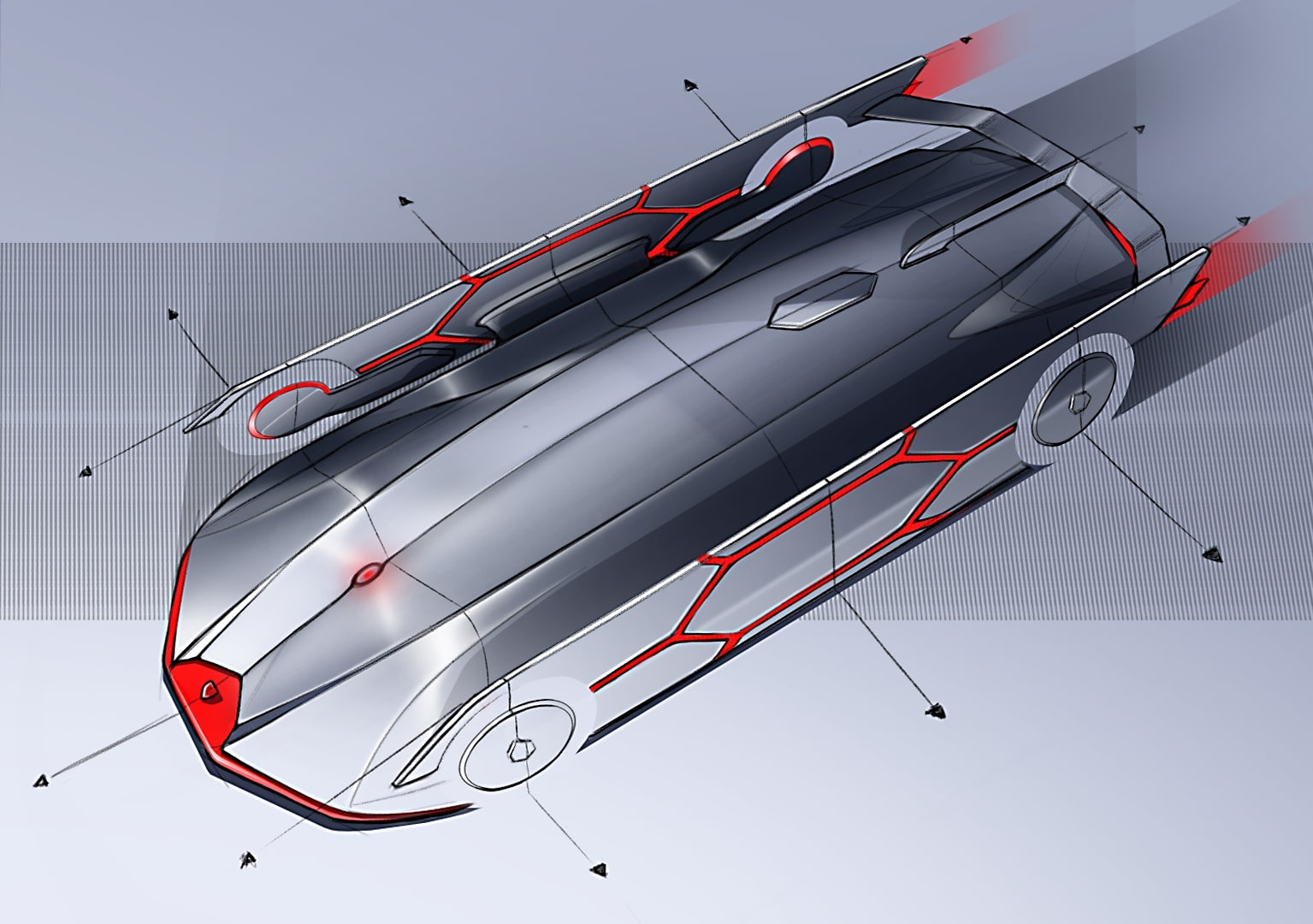 With the improvements in technology and fast-moving trends, Vehicles are getting more & more electric, sustainable, practical, and notably autonomous with a dramatic inside-out transformation that might drive the autonomous future of transportation from motorsport to production. So the idea grew more evident, what if there was a radical inside-out revolutionary design that had a single-surface mould body on top sandwiched on a frame with no constraints for the tires attached through the chassis beneath like the standard car. And what if the top surface mould can be replaced by changing body forms as required such as different vehicle packages, And overall what happens if this was a racing prototype that can steer the future of autonomous transportation.